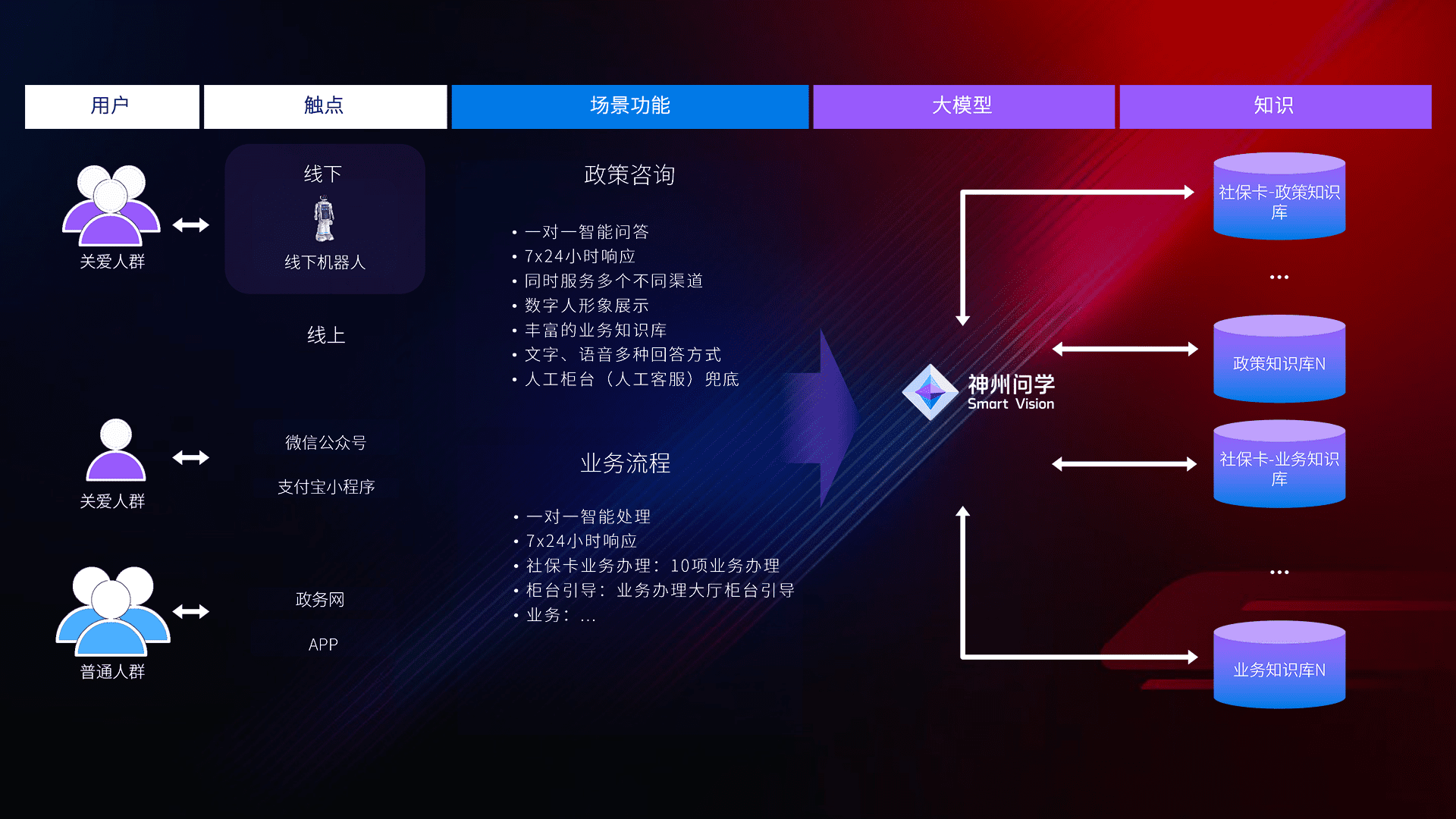 • 线上线下全覆盖:线上提供微信公众号、、、、支付宝小程序、、政务网、、、、app多种渠道,,,与线下机器人形成完整服务体系。。